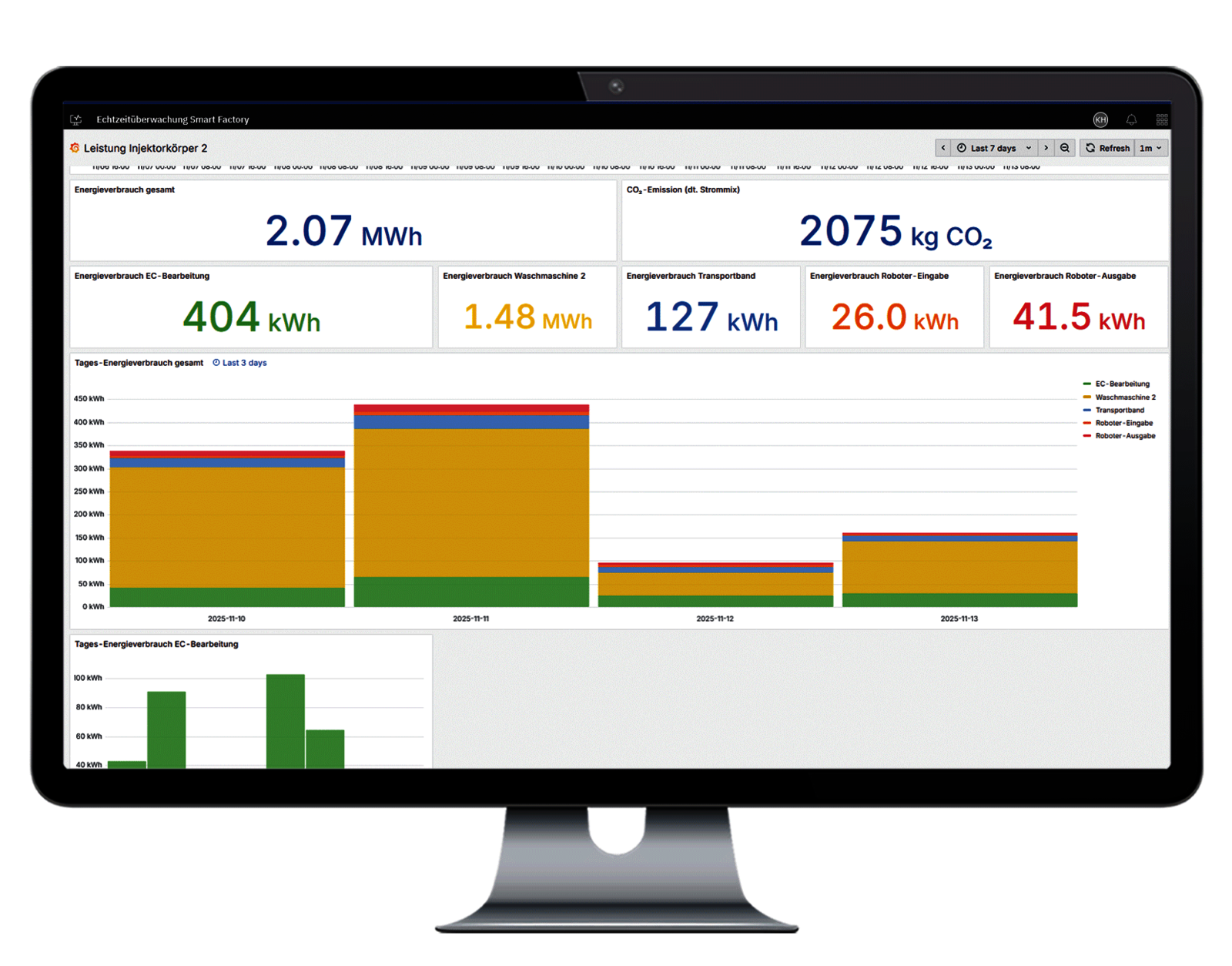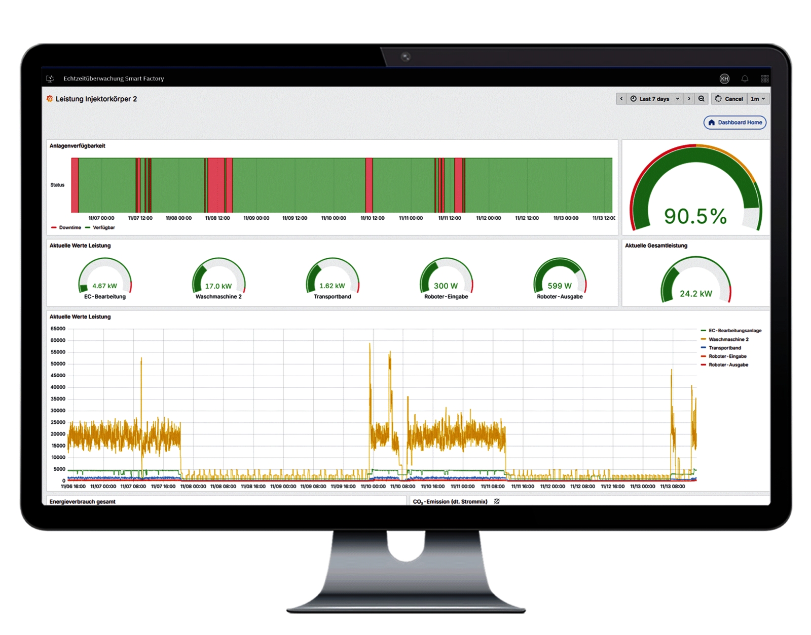 - Echtzeitüberwachung zentraler Maschinenparameter (z. B. Temperatur, Vibration, Energieverbrauch)