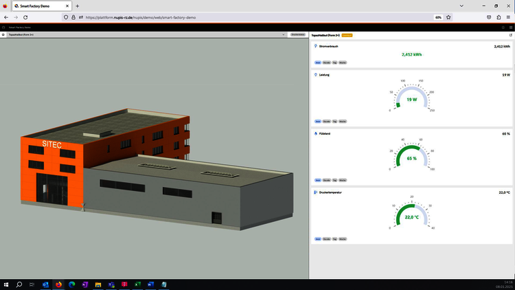 Die steigende Bedeutung von nachhaltiger und ressourcenschonender Produktion wird durch ein präzises Energiecontrolling auf der N+P-Plattform hervorgehoben. Das Energiecontrolling ist ein integraler Bestandteil der N+P-Plattform und ermöglicht es, Ressourcenverbräuche transparent darzustellen, Optimierungspotenziale zu identifizieren und Produktionskosten nachhaltig zu senken. Anhand der digitalen Musterfabrik von SITEC wird gezeigt, wie ein modernes Energiecontrolling realisiert werden kann. Echtzeitdaten von Maschinen, Anlagen und dem Gebäude, wie beispielsweise Stromverbrauch, Druckluft-, Stickstoff- und Schutzgasverbräuche, werden erfasst, visualisiert und analysiert.